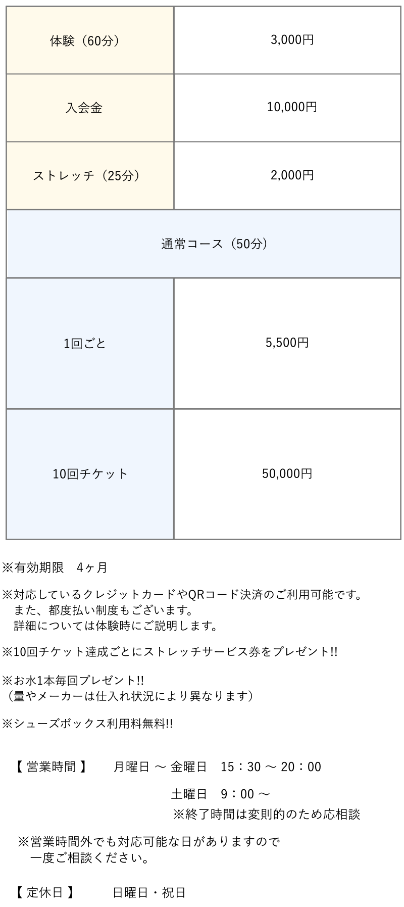 料金・営業時間